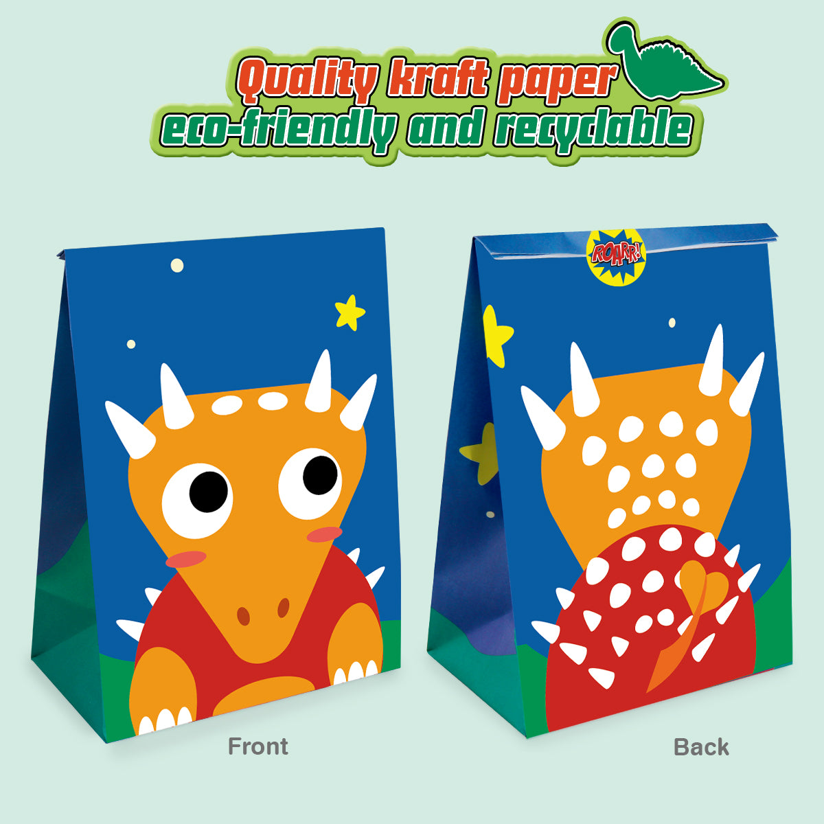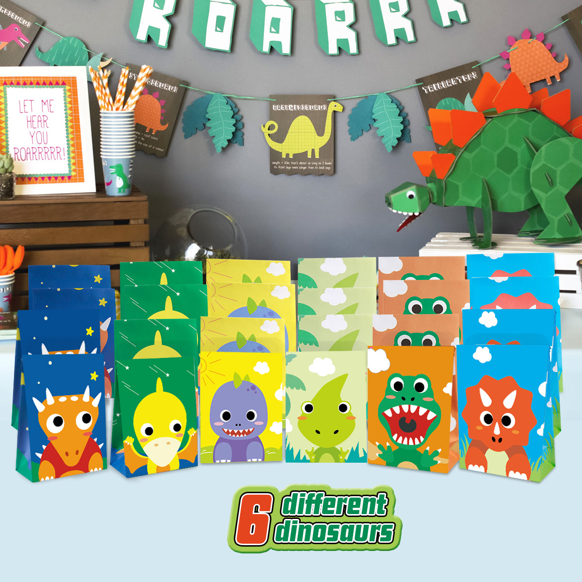 Mocoosy 24Pcs Dinosaur Party Favor Bags, Kids Goodie Bags for Birthday Party Supplies, Dinosaur Candy Treat Bags Small Paper Gift Wrap Bags for Dinosaur Theme Birthday Party Baby Shower Decorations