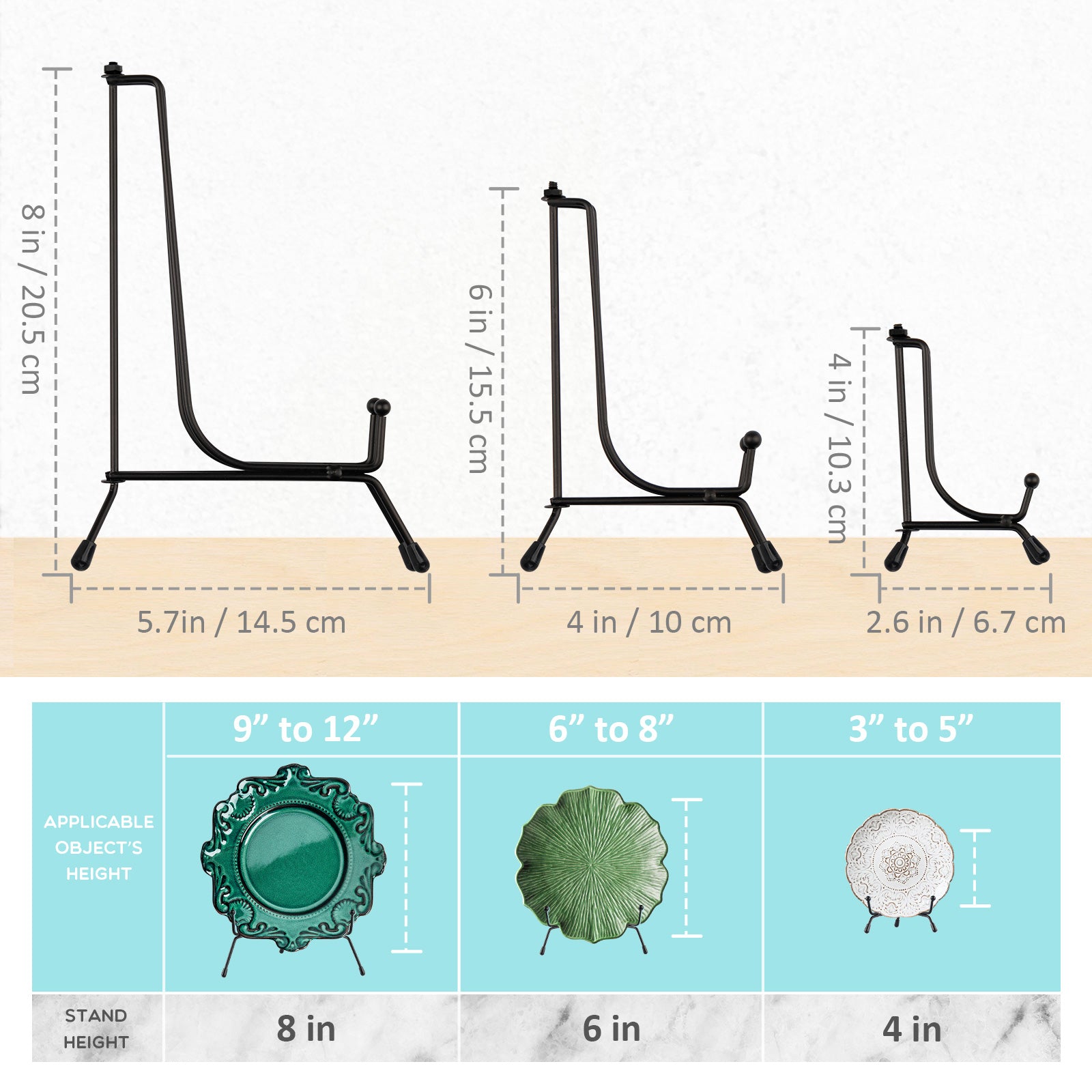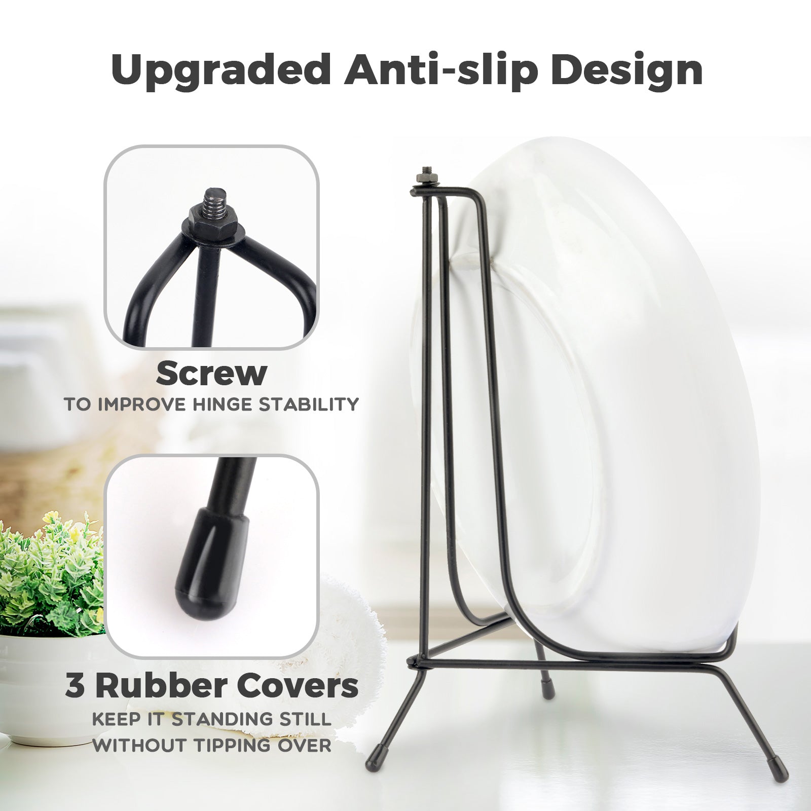 Mocoosy 4 Pack 8 Inch Improved Anti-Slip Plate Stands for Display, Plate Holder Display Stand, Picture Frame Holder Stand, Black Iron Easel Stands for Photo, Decorative Plate, Tablets and Table Art
