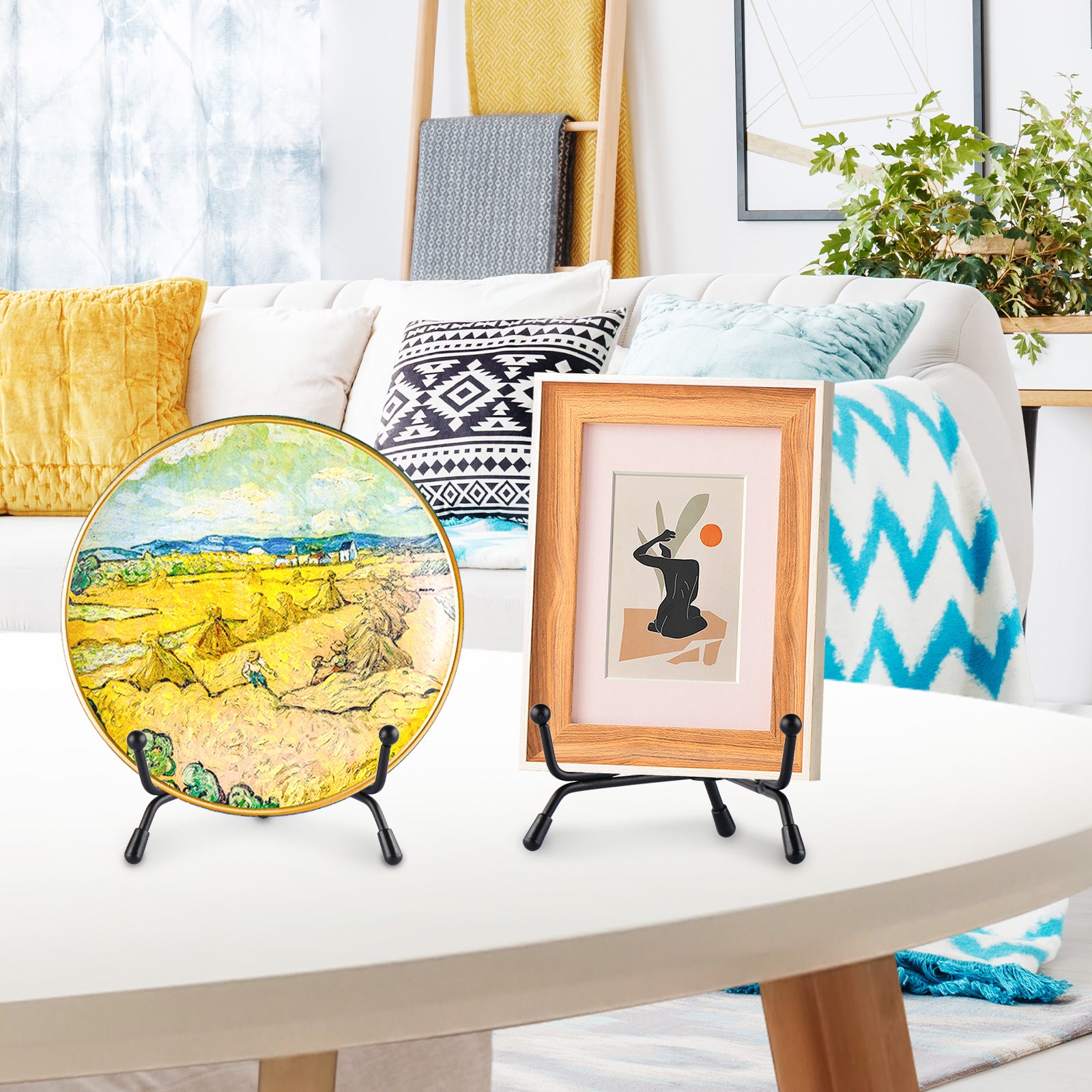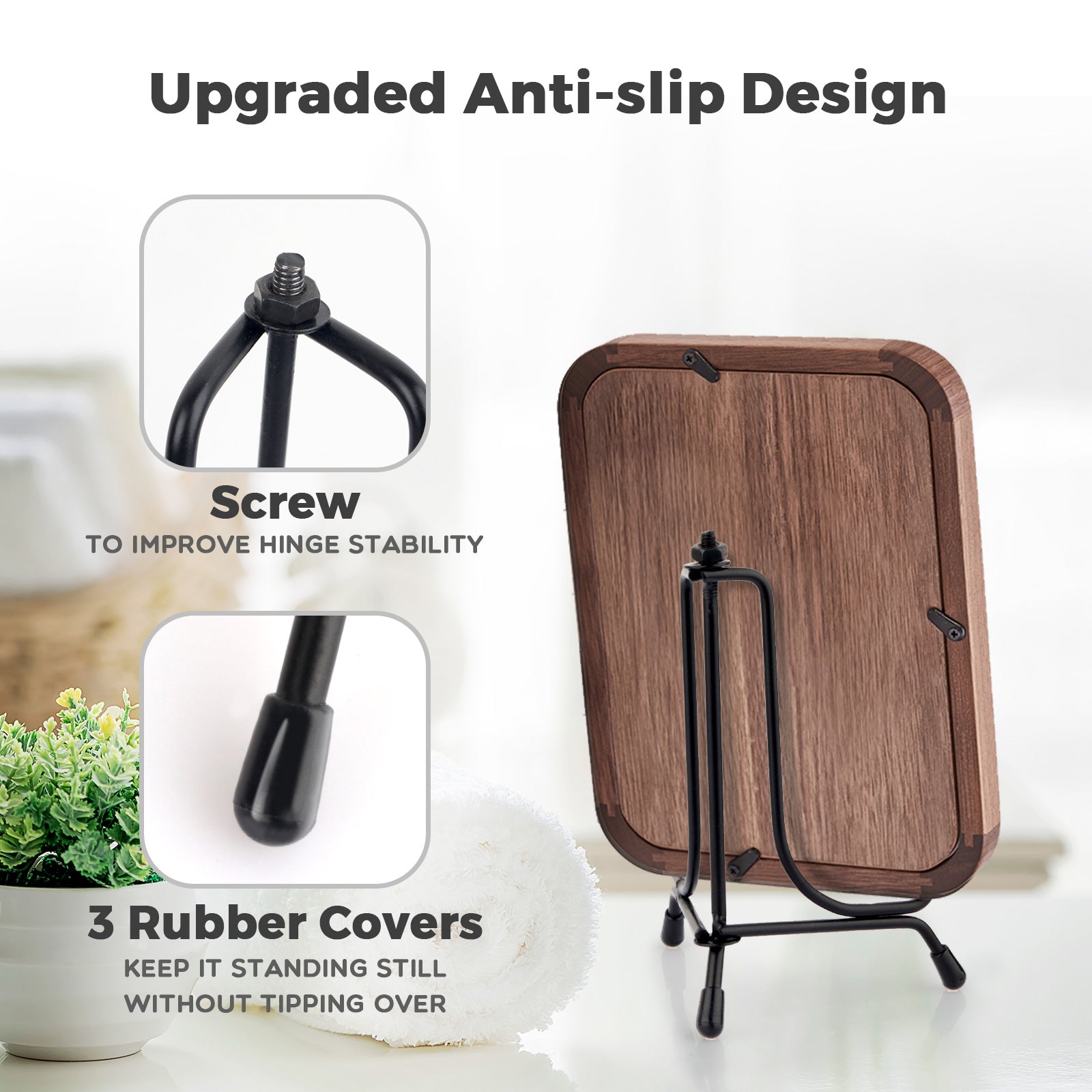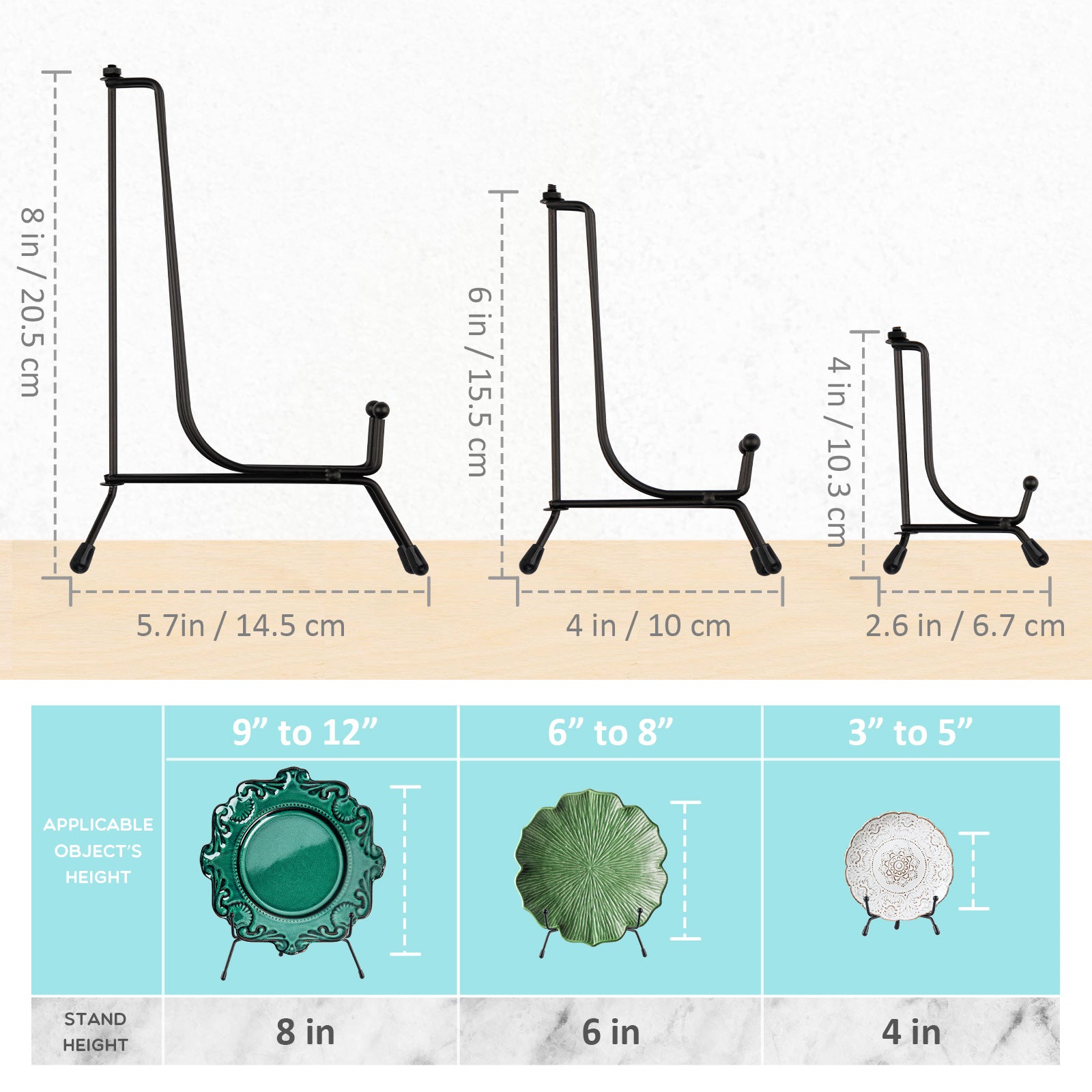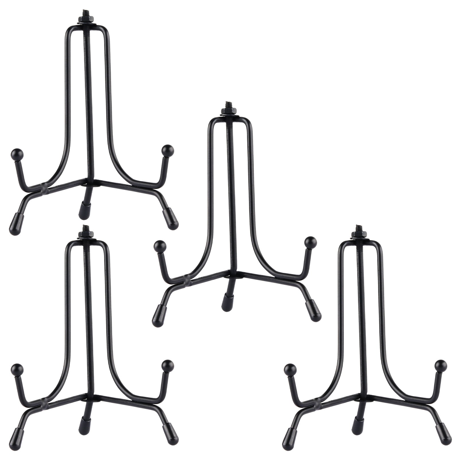 Mocoosy 4 Pack Improved Anti-Slip Plate Stands for Display, 4 Inch Plate Holder Display Stand, Picture Frame Holder Stand, Black Iron Easel Stands for Photo, Decorative Plate and Tabletop Arts