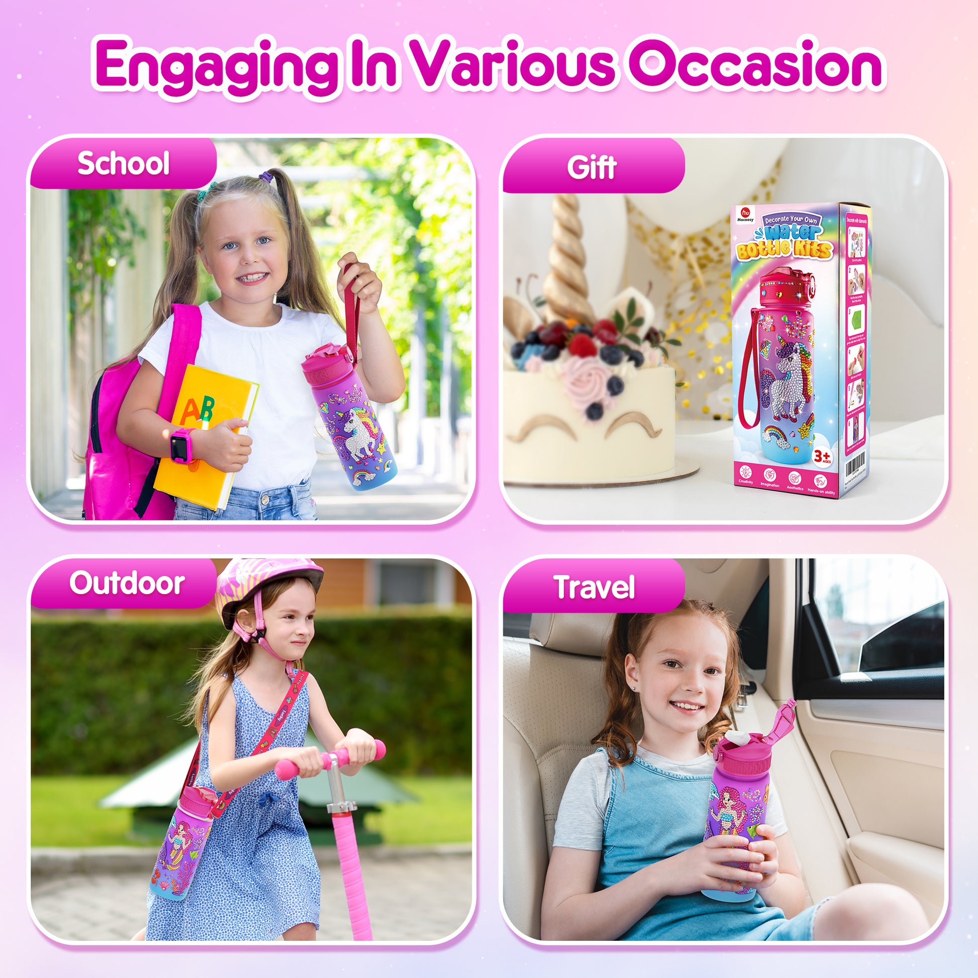 Mocoosy Decorate Your Own Water Bottle Kit for Girls, Art Crafts for Kids Ages 4-6-8-12, Unicorn & Mermaid Diamond Art Painting Toys Summer Craft Activity Birthday Gift Ideas for Girls 5-10 Years Old