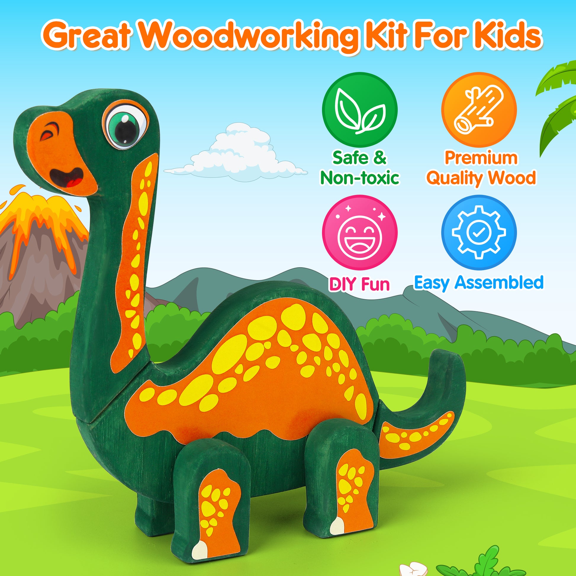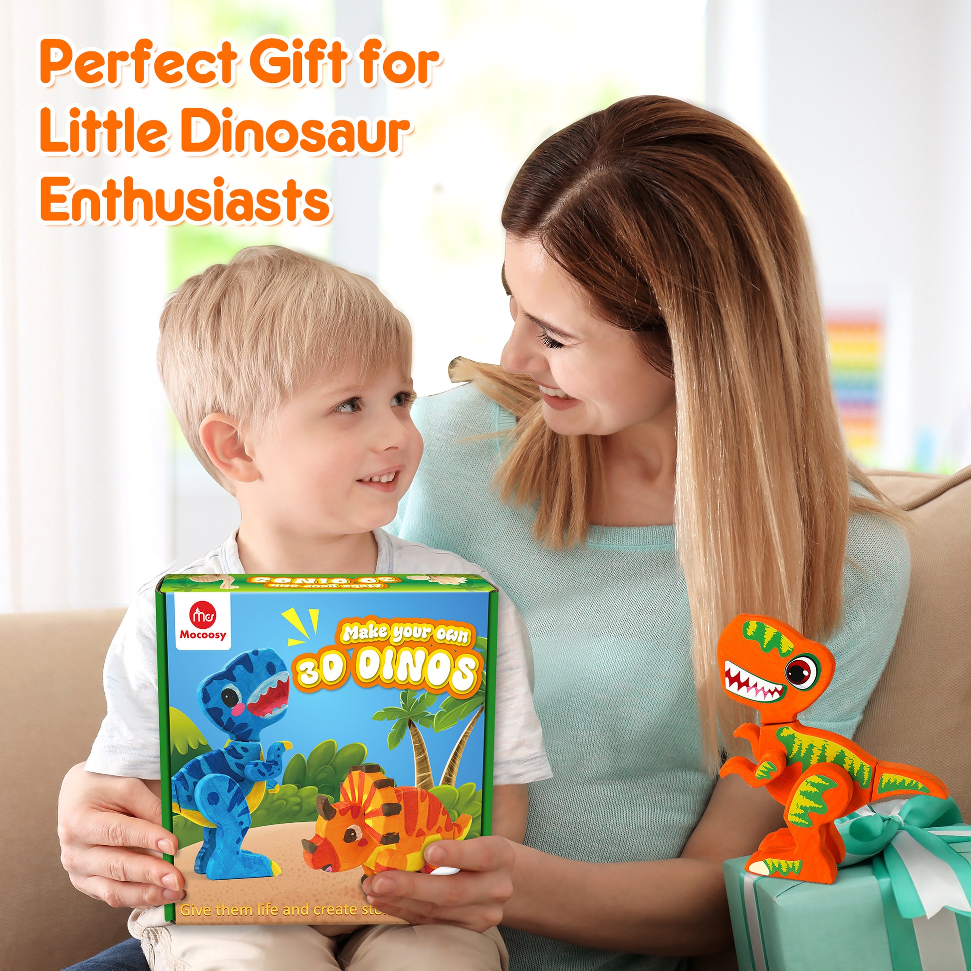 Mocoosy Wooden Dinosaur Painting Art Craft Kit for Kids 3-5, Wood Take Apart Dinosaur Snap Together Building Toy,Build Your Own Dinosaurs with Paint and Stickers STEM Game Creative Gift for Boys Girls